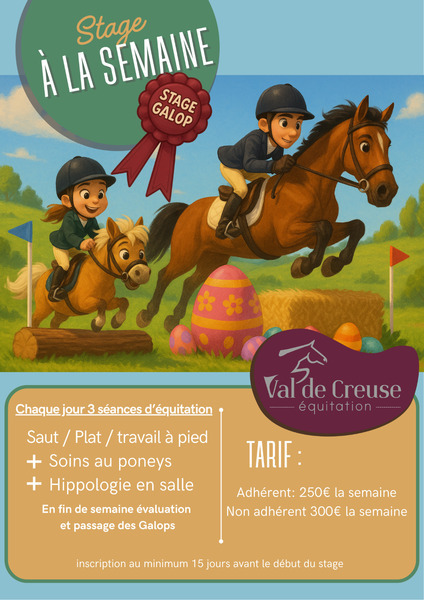Chaque vacances scolaire permet l'organisation de stage afin de permettre aux cavaliers de découvrir une nouvelle discipline, de se perfectionner, de préparer une échéance sportive, de faire une randonnée ou bien de passer des galops.